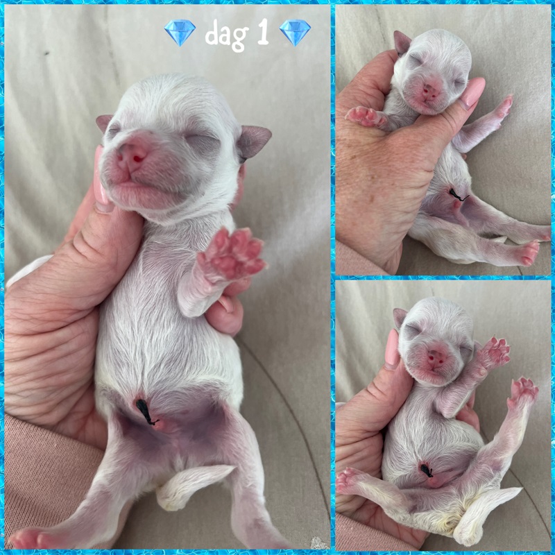 Den 22. september startede Ivy i opblokning og kl. 08.15 den 23. september kom første hvalp til verden. Det blev til 4 smukke hvalpe, 3 piger og en dreng. Opblokning og lidt lang fødsel klarede Ivy til UG.